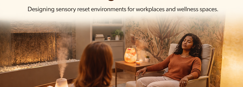 Designing sensory reset environments for workplaces and wellness spaces.